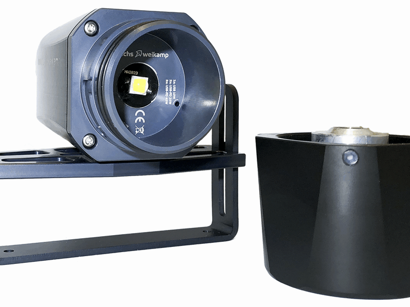 Die Testtiefe der hw40 beträgt 300m, ein 8mm Borosilikatglas, Edelstahlgewindebuchsen für die Befestigung am Goodman-Handle und eine normgerechte Ausführung der Dichtungen und Schraubverbindungen sind Garant für eine zuverlässige Funktion auch im Höhlentaucher-Alltag. Die Lampe lässt sich zum Laden werkzeuglos öffnen, die O-Ringe sind gut erreichbar und können einfach kontrolliert und getauscht werden. An allen Dichtebenen kommen zwei O-Ringe zum Einsatz. Im Fall eines unwahrscheinlichen Druckanstiegs in der Lampe (vorheriger Wassereinbruch, thermisches Durchgehen der Akkuzellen) scheren die Kunststoffstifte des Vorderteils kontrolliert ab und verhindern eine unkontrollierte Druckentlastung.